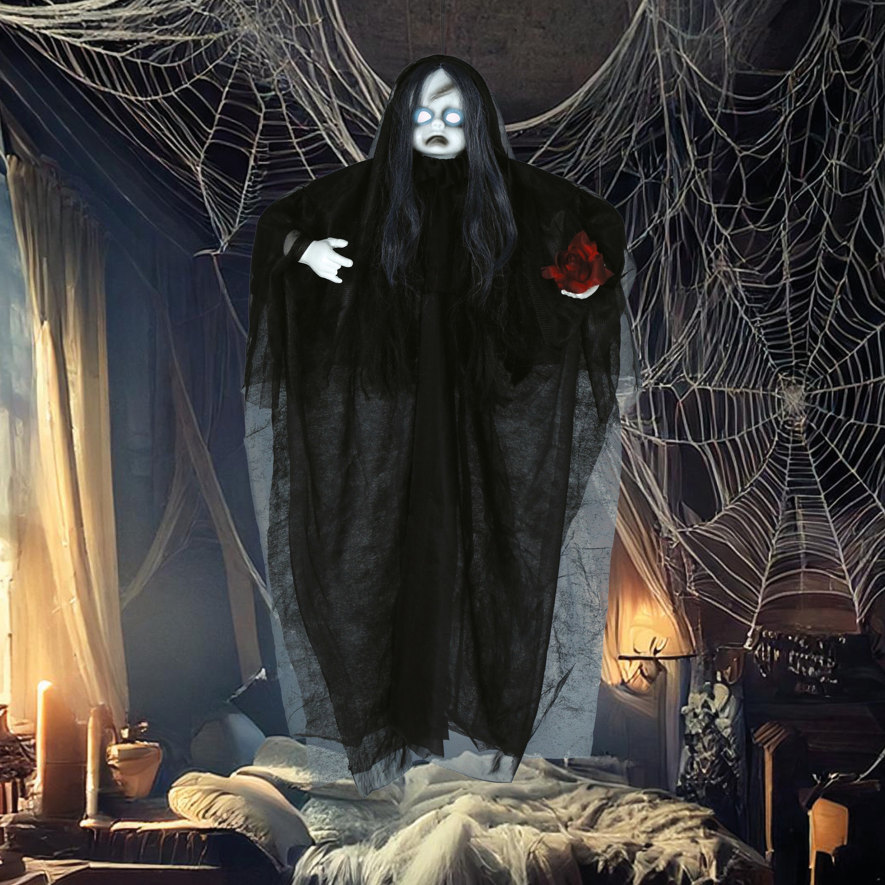 - Zum Aufhängen an der Decke oder Wand, um Ihre Halloween-Dekoration zu vervollständigen.