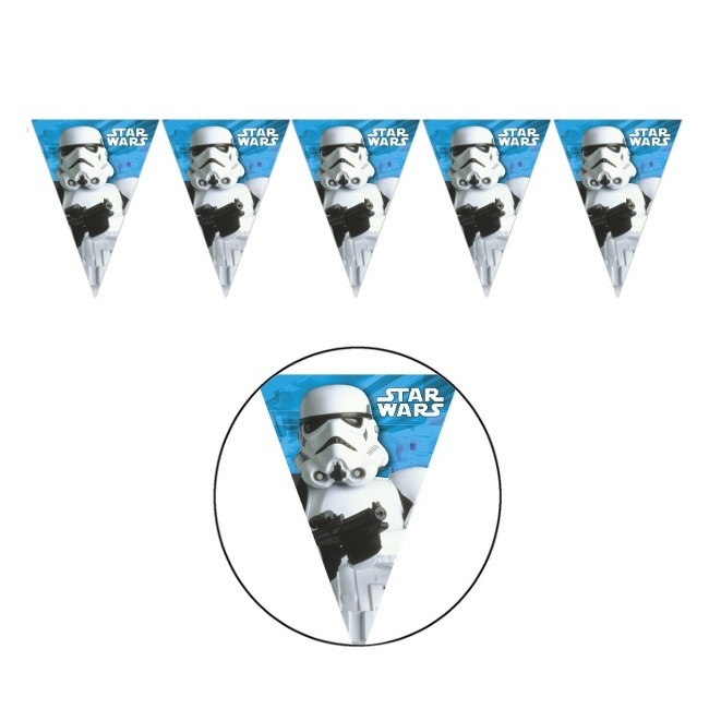 Sie können ihn an den Enden befestigen, um eine weiß-blaue Dreiecksgirlande mit der Figur des Stormtroopers aus der Star Wars-Saga zu präsentieren.