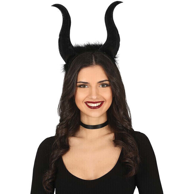 Vervollständige deine Verwandlung in die böseste Königin der Feen mit diesem Stirnband mit großen, gewellten schwarzen Hörnern.