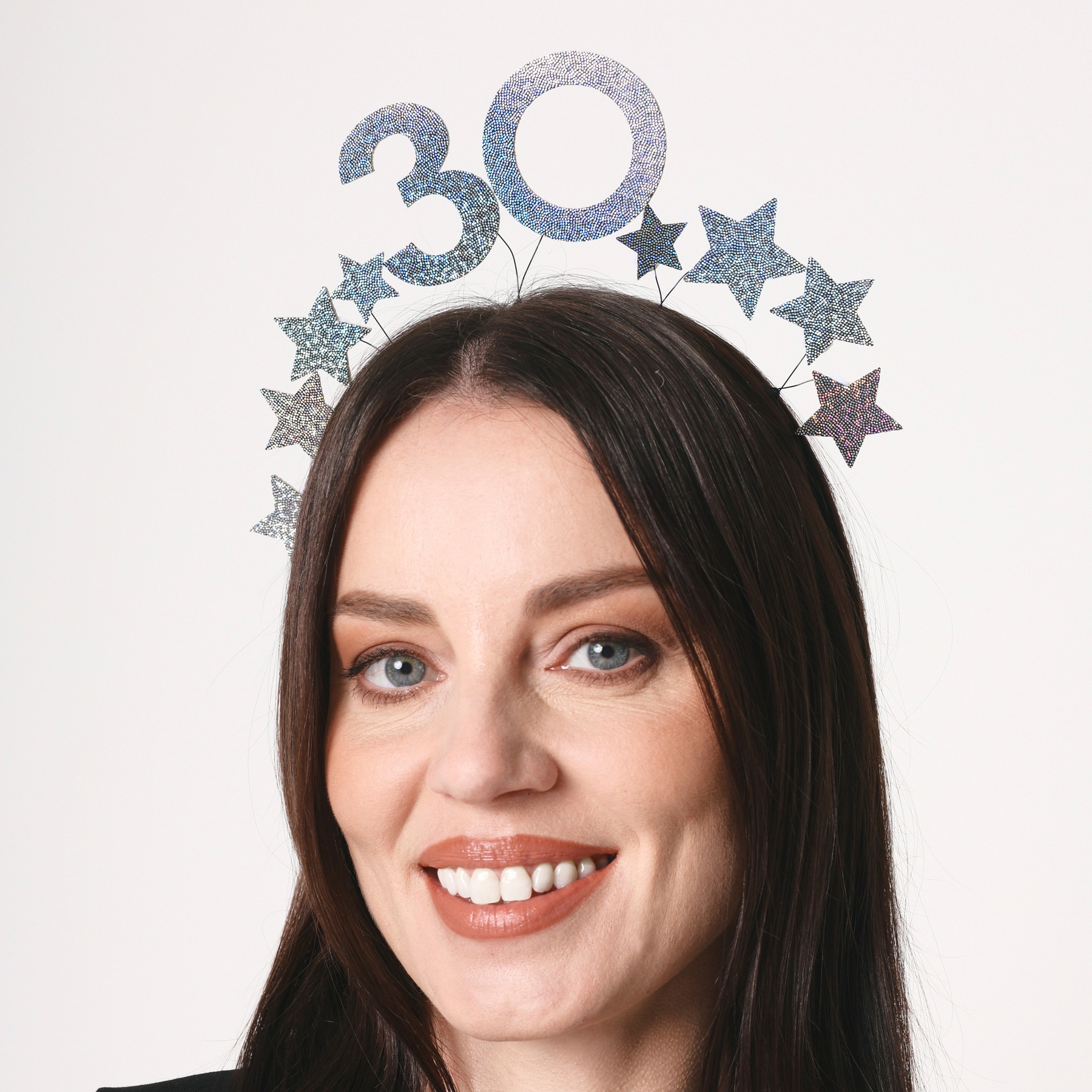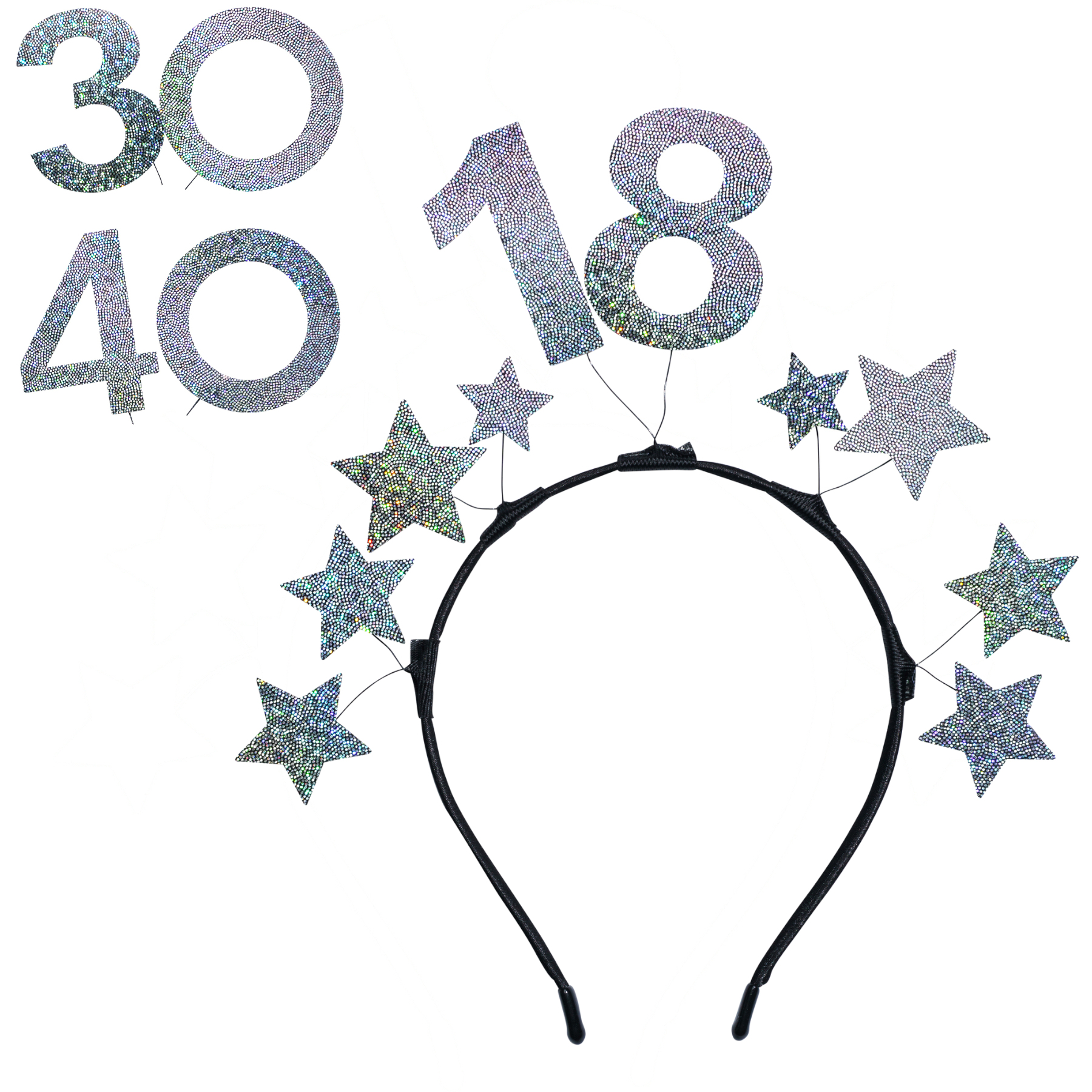 - Stirnband mit Sternen und einer Zahl in holographischer Optik.