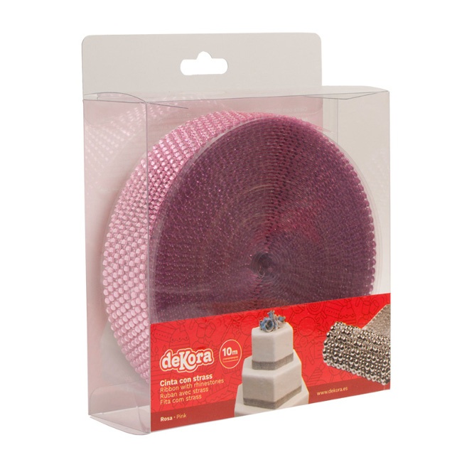 Das Band ist mit rosa Strasssteinen verziert und lässt sich leicht auf der Torte anbringen, ohne dass Sie die Strasssteine abziehen müssen. Es wird jedoch empfohlen, das Band vor dem Verzehr der Torte zu entfernen.