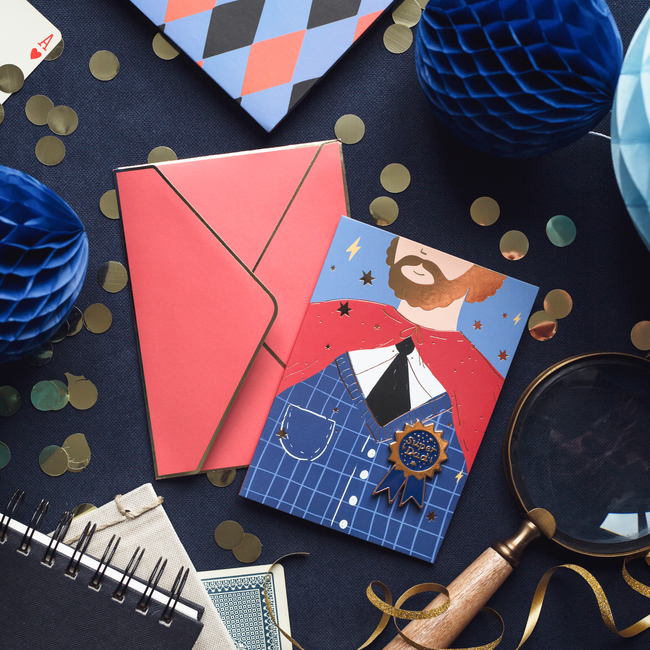 • Der Bart des Vaters ist aus reflektierendem Goldpapier gefertigt