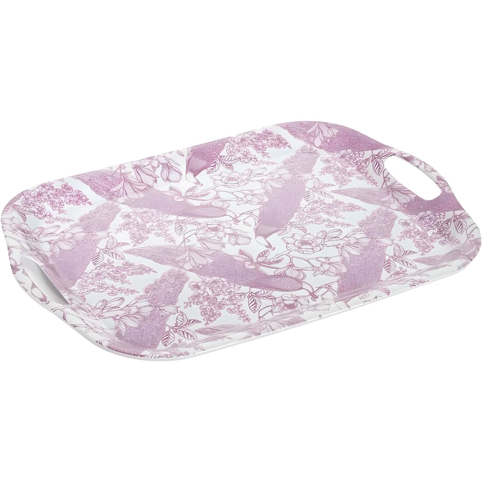 Elegantes, fliederfarbenes Tablett mit zartem Blumenmotiv - gestaltet, um Ihren Tischmomenten Stil zu verleihen.