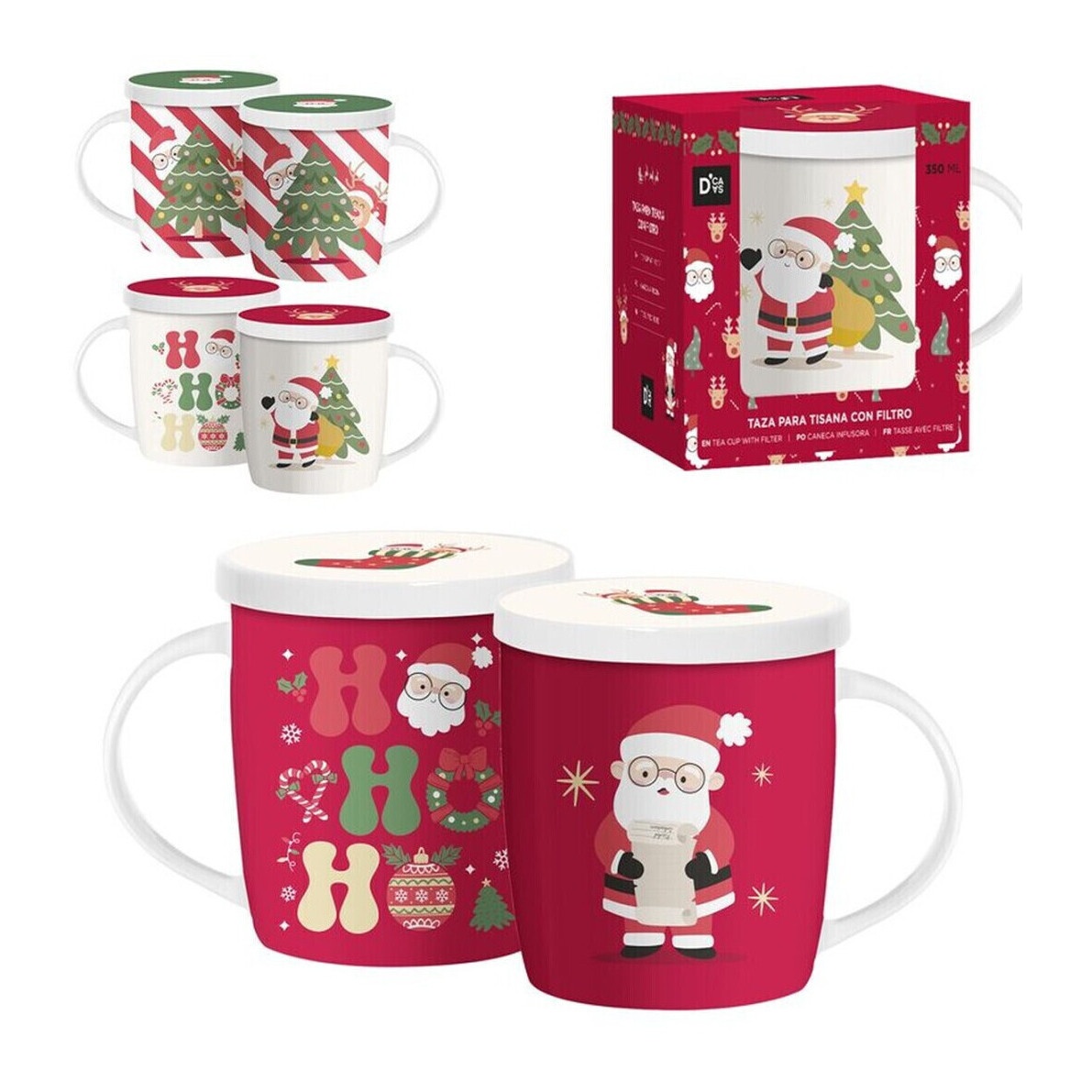 Tasse mit 350 ml Fassungsvermögen 'HoHoHo' von Santa Claus mit Teefilter - 1 Stück