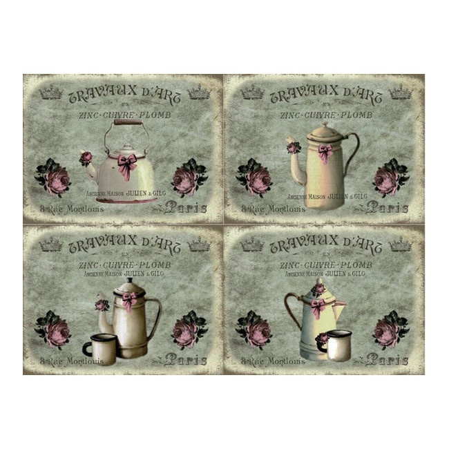Schönes Reispapier mit einer sehr leichten, aber starken Textur. Es besteht aus einem Blatt mit vier Teestunden-Szenen mit einem gealterten Effekt.