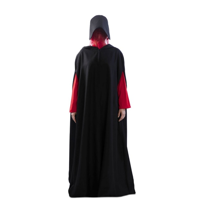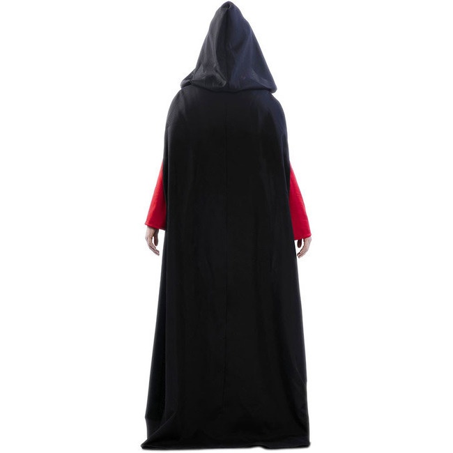 Dieses Kostüm besteht aus einem schwarzen Poncho mit einer schwarzen Kapuze. Dazu gehört ein roter Schleierhut, der sich dank eines Gummibandes leicht anpassen lässt. Die roten Ärmel vervollständigen dieses gruselige Outfit.
