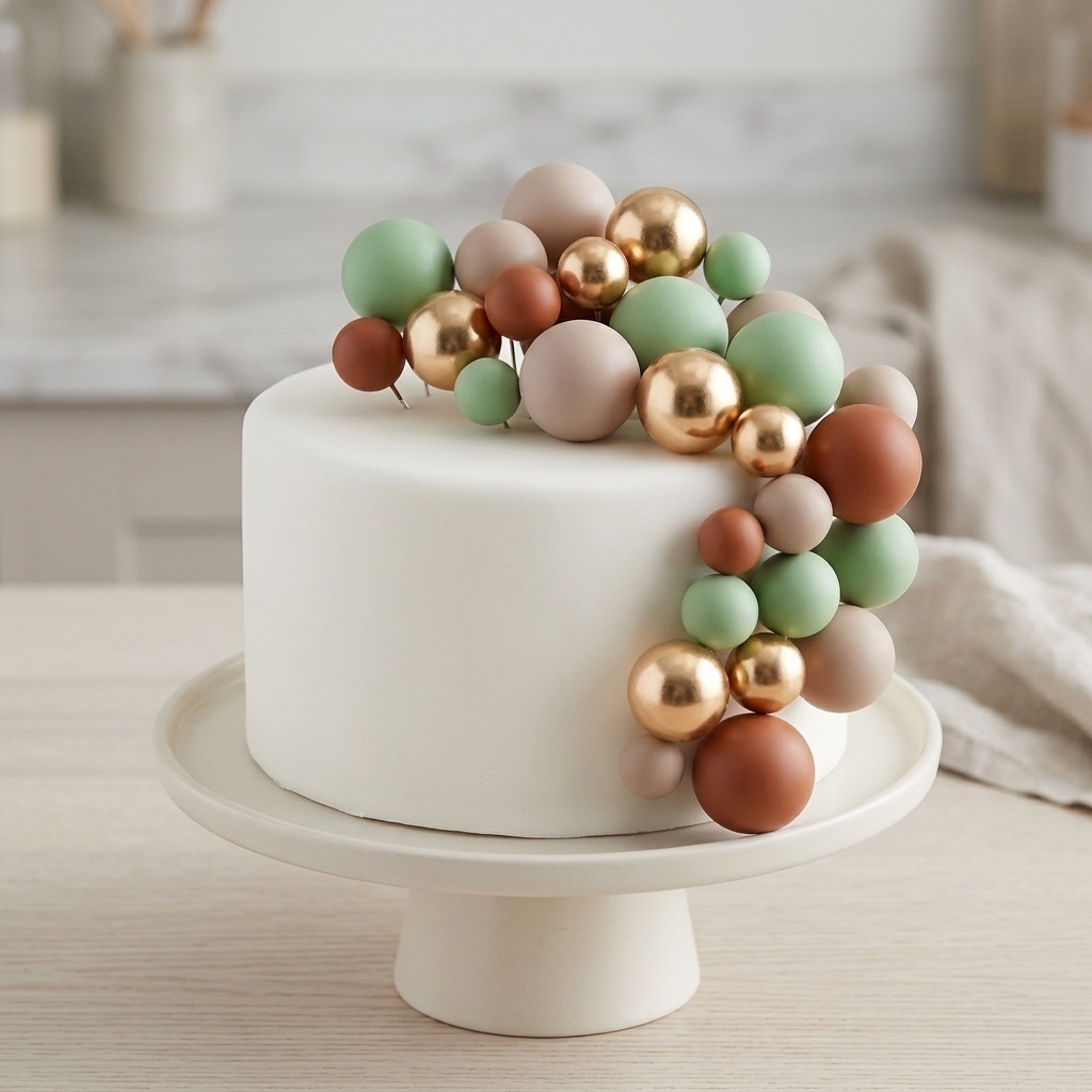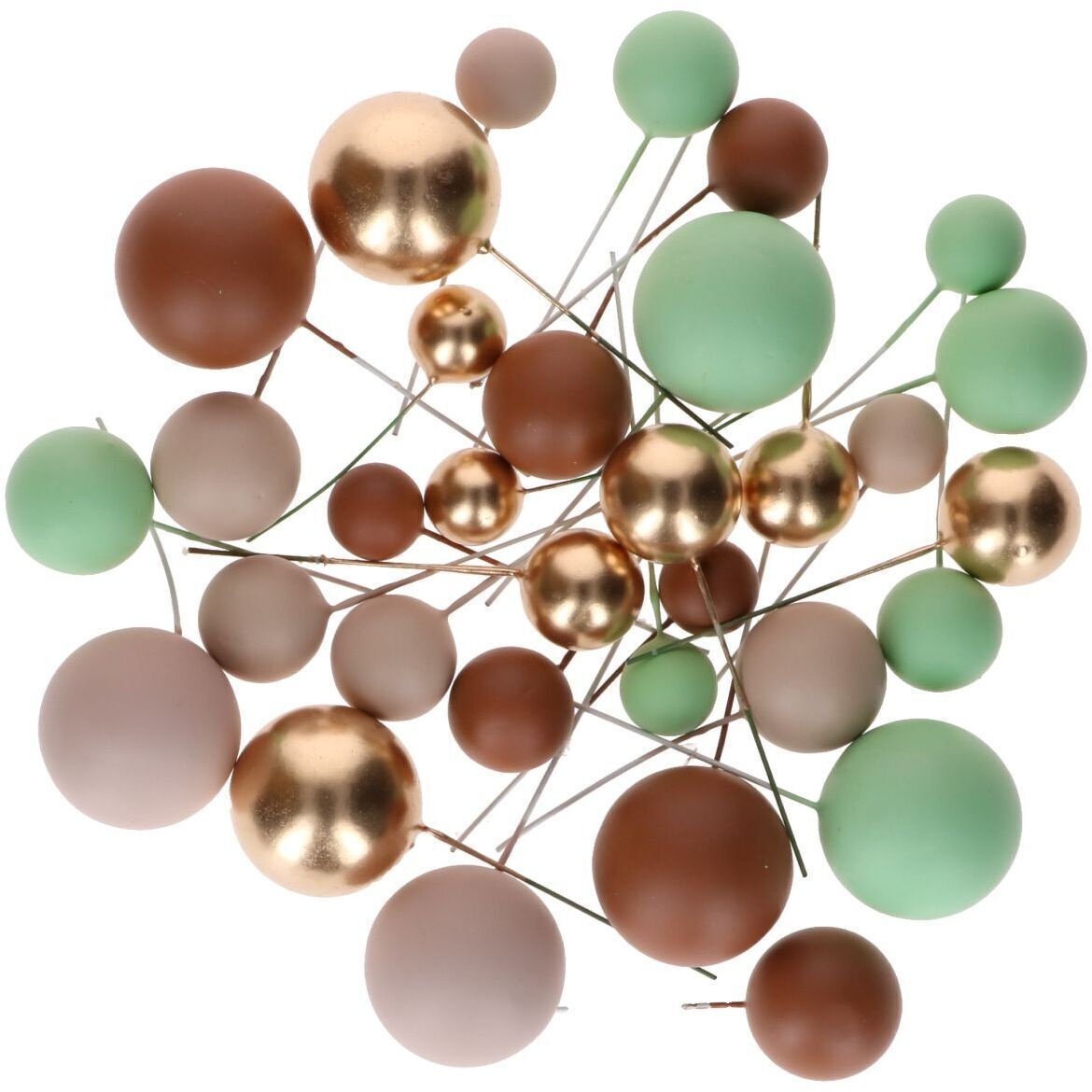 Torten-Topper mit braunen, grünen und goldenen Kugeln - 32 Stück