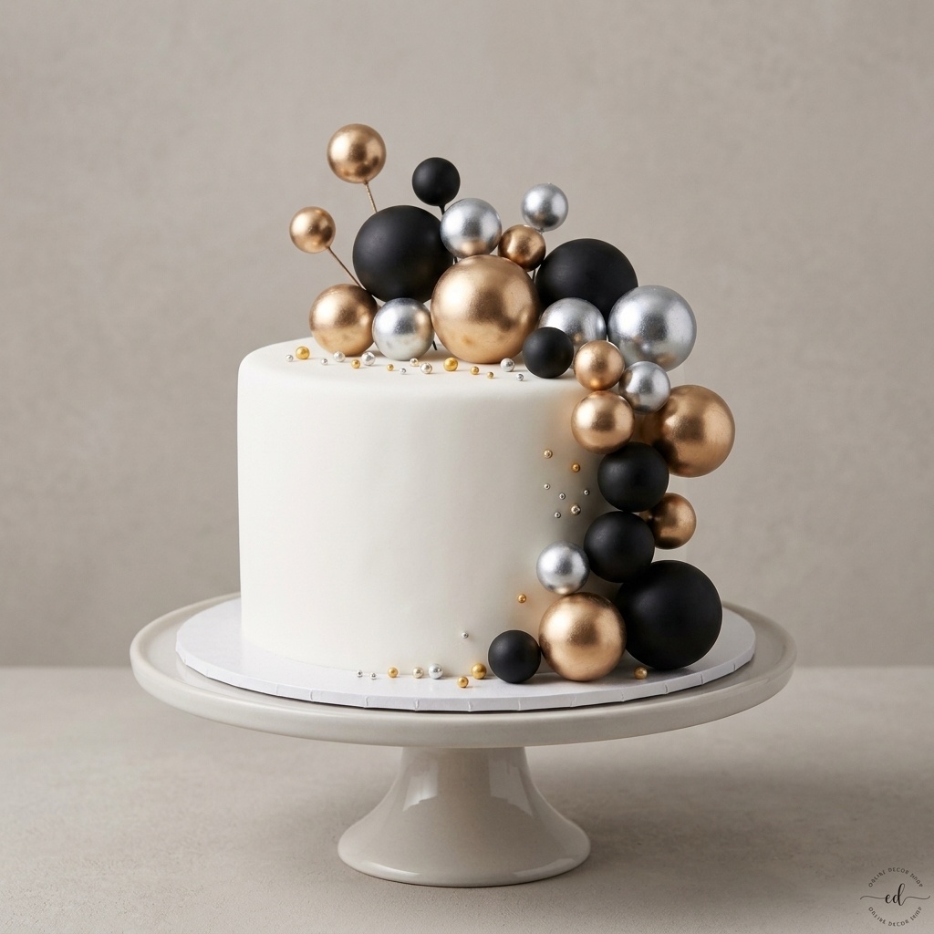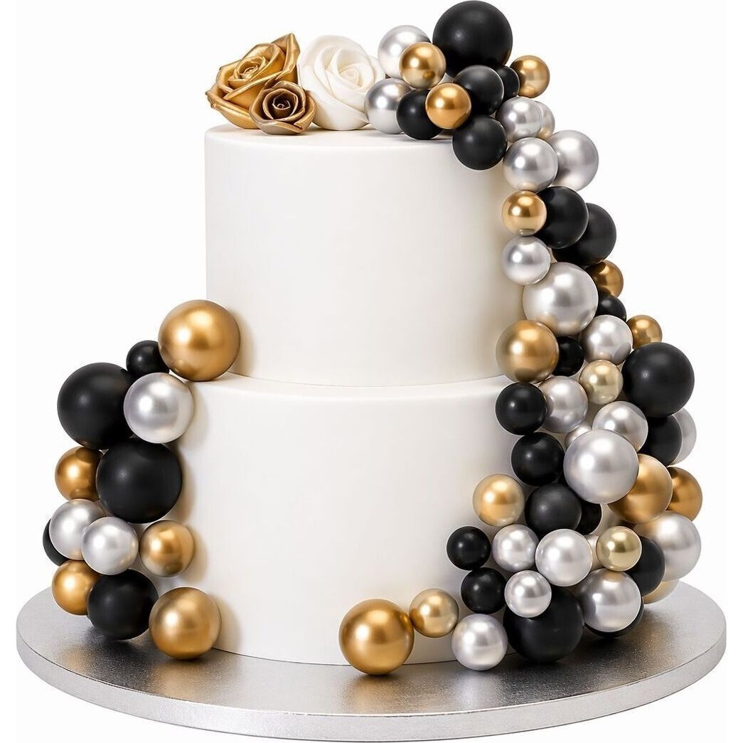 Torten-Topper mit schwarzen, goldenen und silbernen Kugeln - 32 Stück