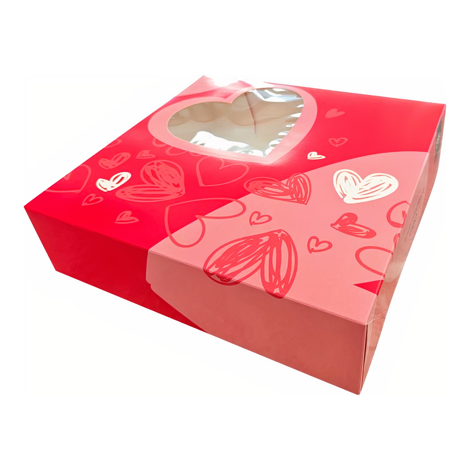 Praktische Kartonbox mit Sichtfenster - ideal, um Ihre Torte zum Valentinstag sicher und stilvoll zu transportieren.