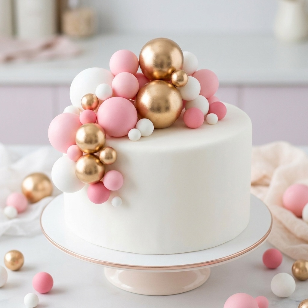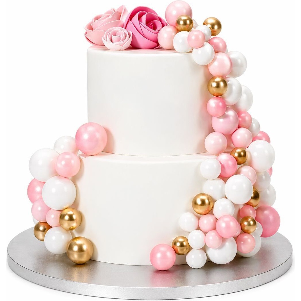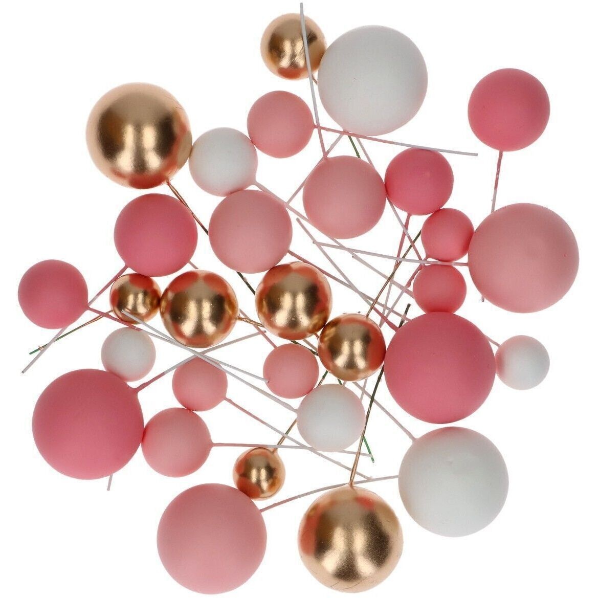Tortentopper mit pastellrosa, goldenen und weißen Kugeln - 32 Stück