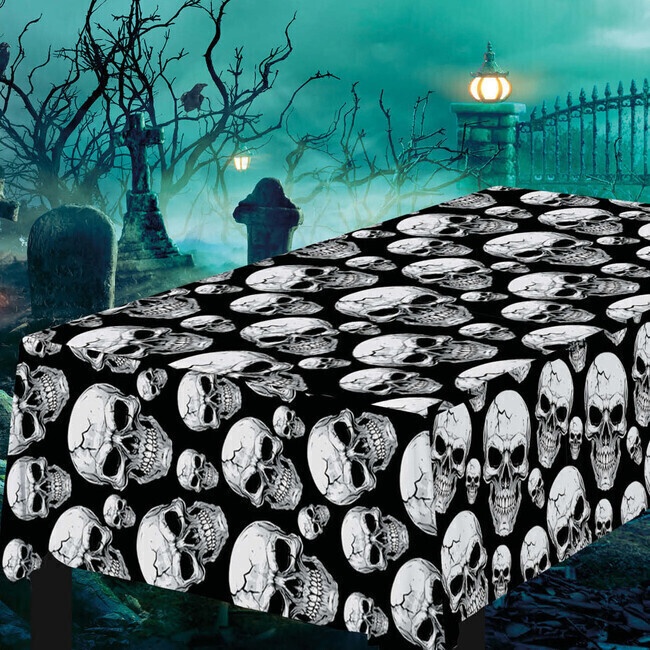 Totenköpfe Tischdecke schwarz 1,37 x 2,74 m