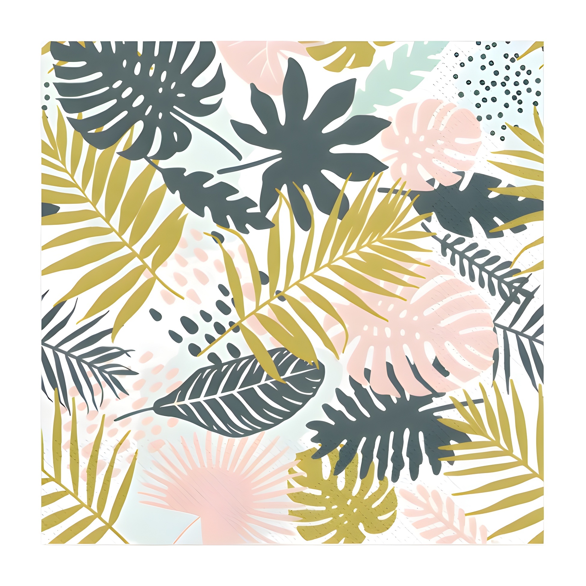 Exotisches Serviettenset mit einem von tropischen Blättern inspirierten Design, um Ihre Mottopartys und Geburtstage zu verschönern.