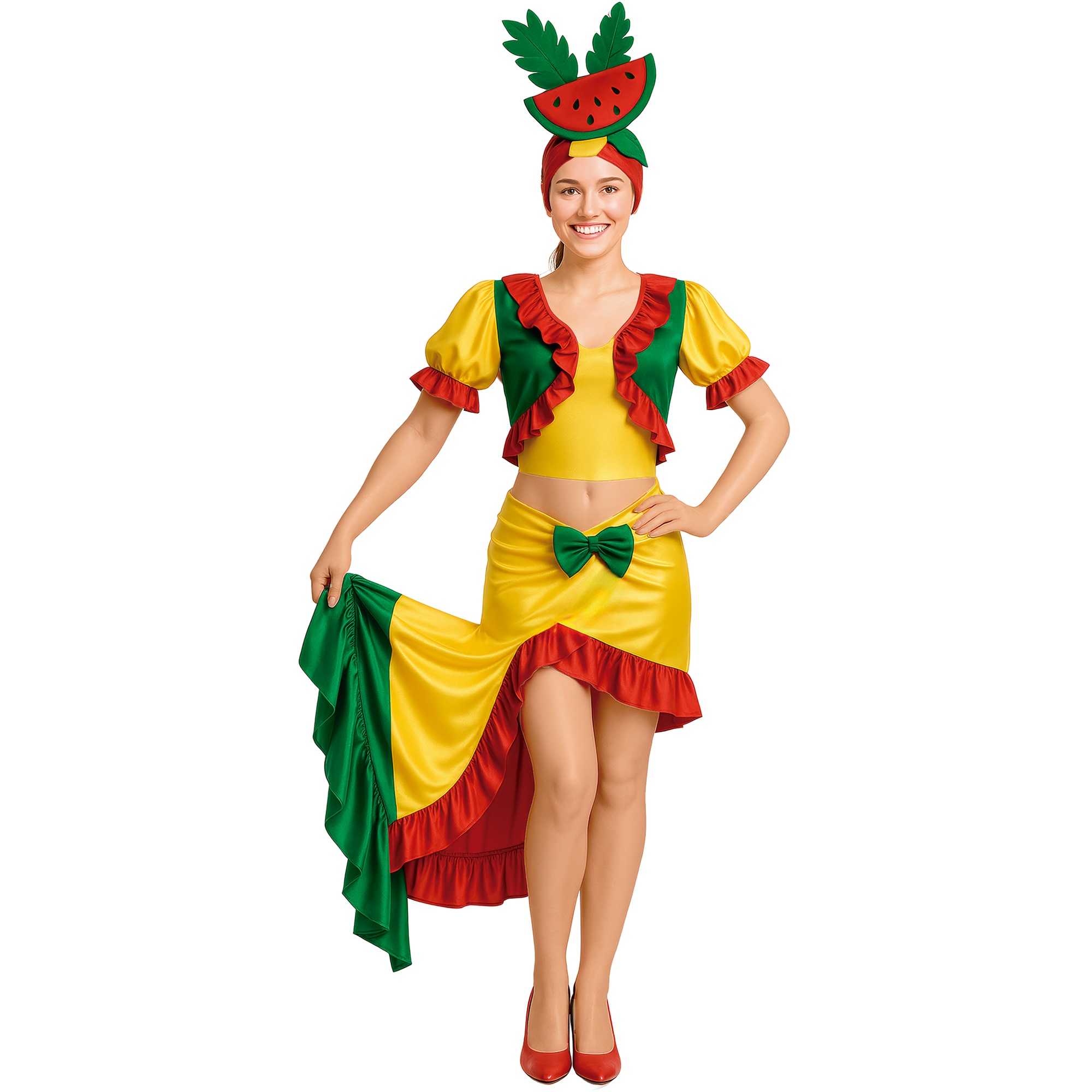 Fröhlich geschnittenes kubanisches Kostüm in leuchtenden Farben - entworfen, damit Sie bei Umzügen und Feierlichkeiten herausstechen.