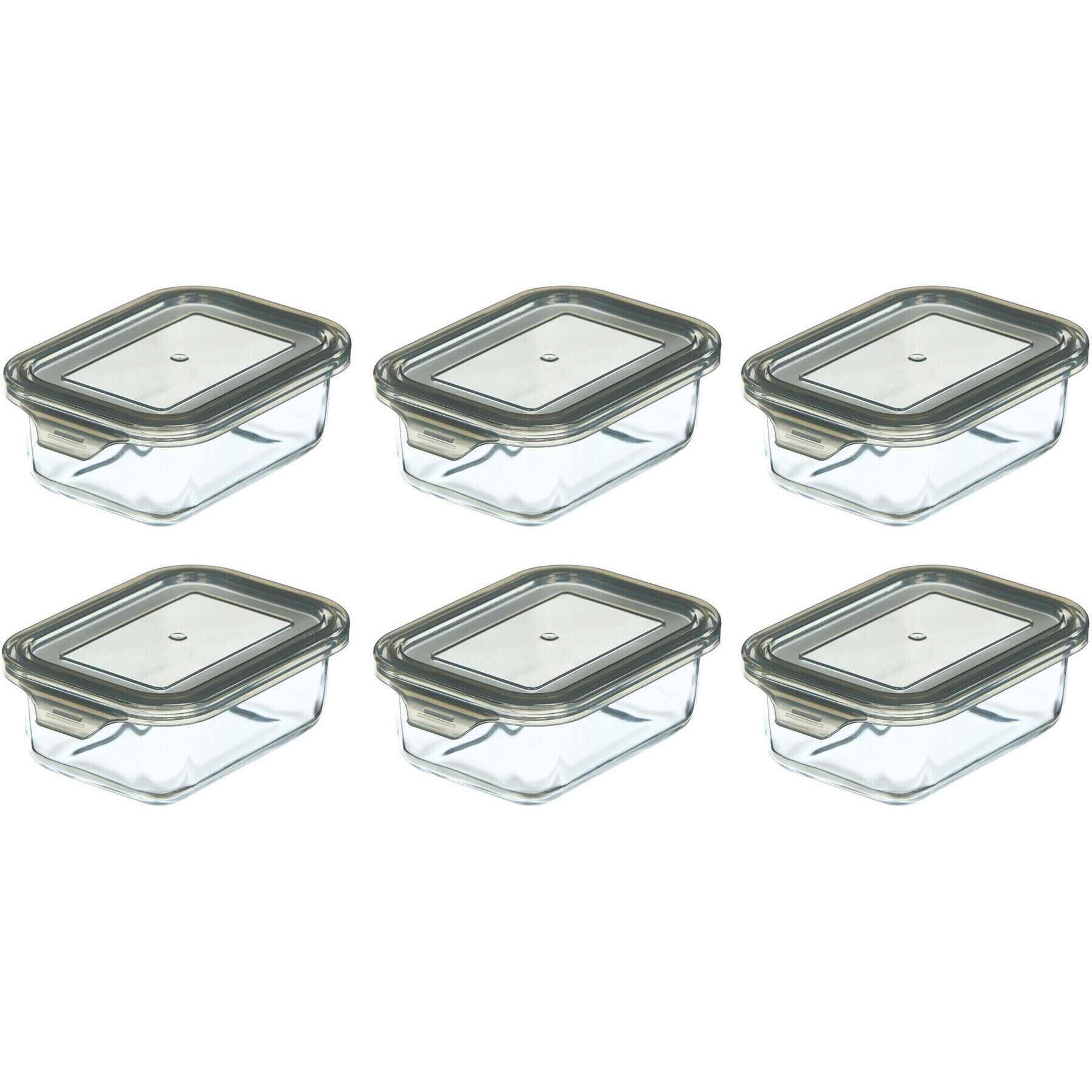 Tupper aus Glas 0,37 l mit grauem Deckel - 6 Stück