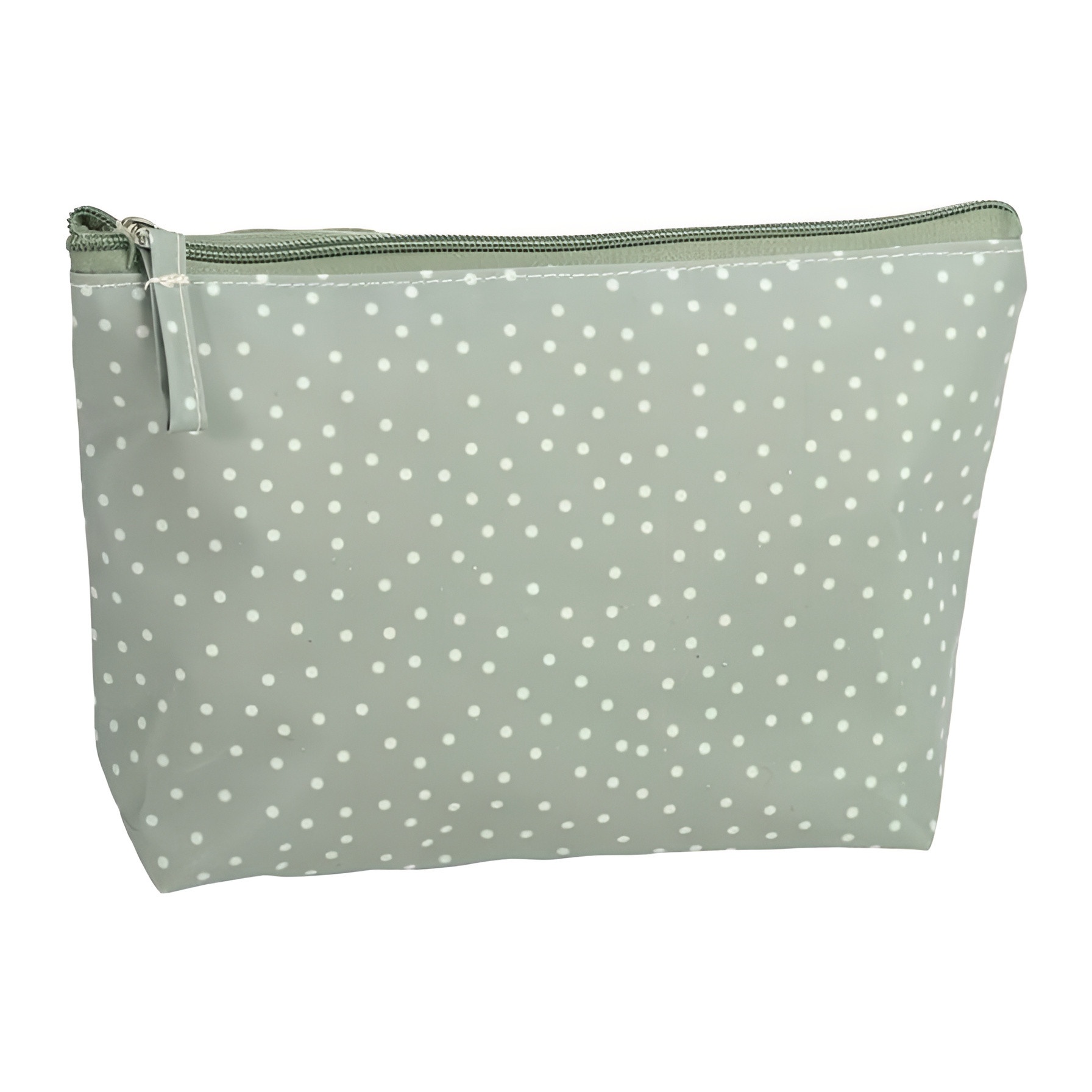 Wasserabweisender grüner Kulturbeutel mit Punkten, 27 x 17 x 6 cm