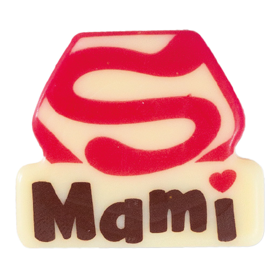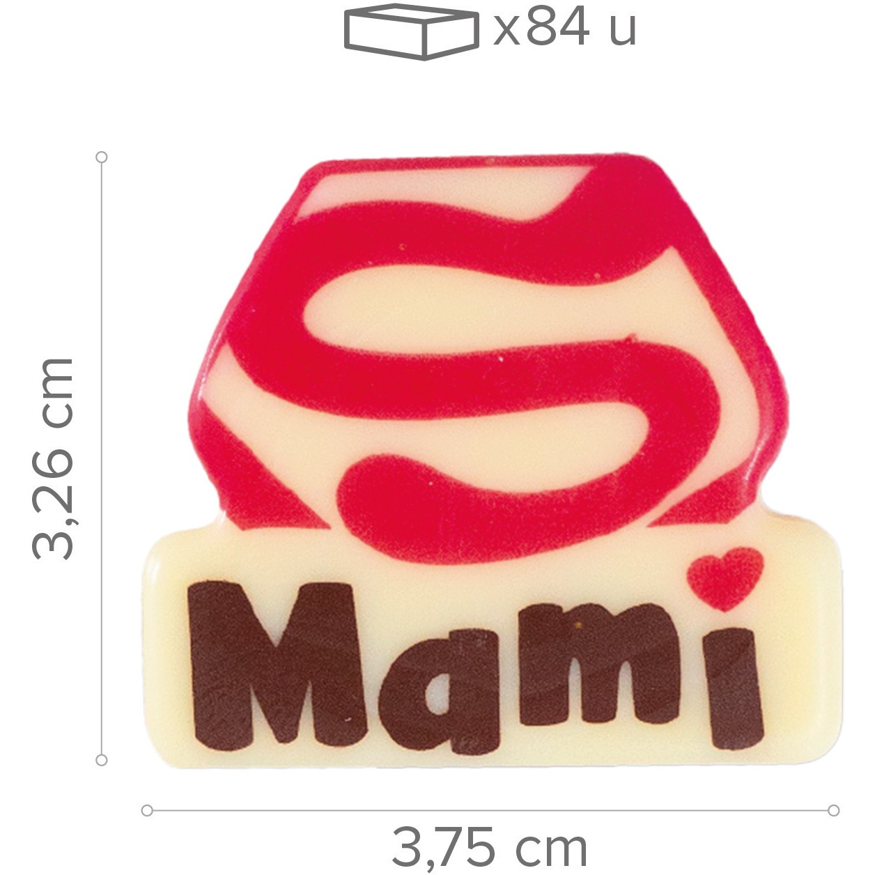 Weiße Schokoladenaufleger "Super Mami", 3,7 x 3,2 cm - 84 Stück