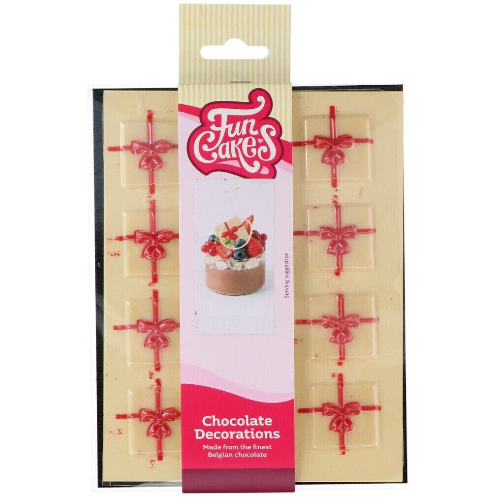 • 12 belgische Schokoladendekorationen von Funcakes, perfekt für Weihnachten gestaltet.