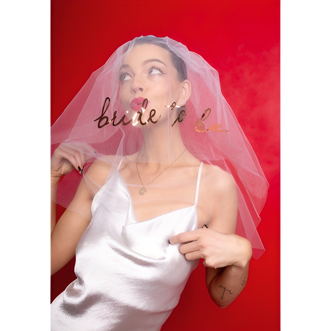 - Aufschrift 'Bride to be' in roségoldfarben, die dem Schleier eine elegante und festliche Note verleiht.