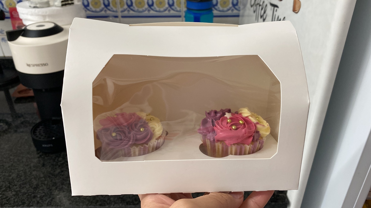Weißer Cupcake-Karton für 2 Cupcakes mit Sichtfenster - Azucren