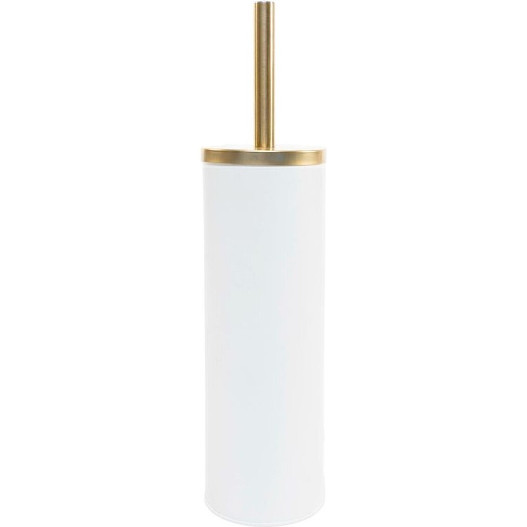Weißer WC-Bürstenhalter im minimalistischen Stil mit goldenem Detail, das Ihrem Bad eine unaufdringlich elegante Note verleiht.