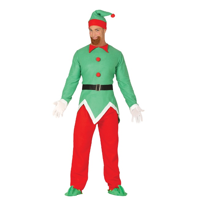 Dies ist ein Elfenkostüm für Erwachsene, die sich zu Weihnachten als Helfer des Weihnachtsmanns verkleiden wollen.