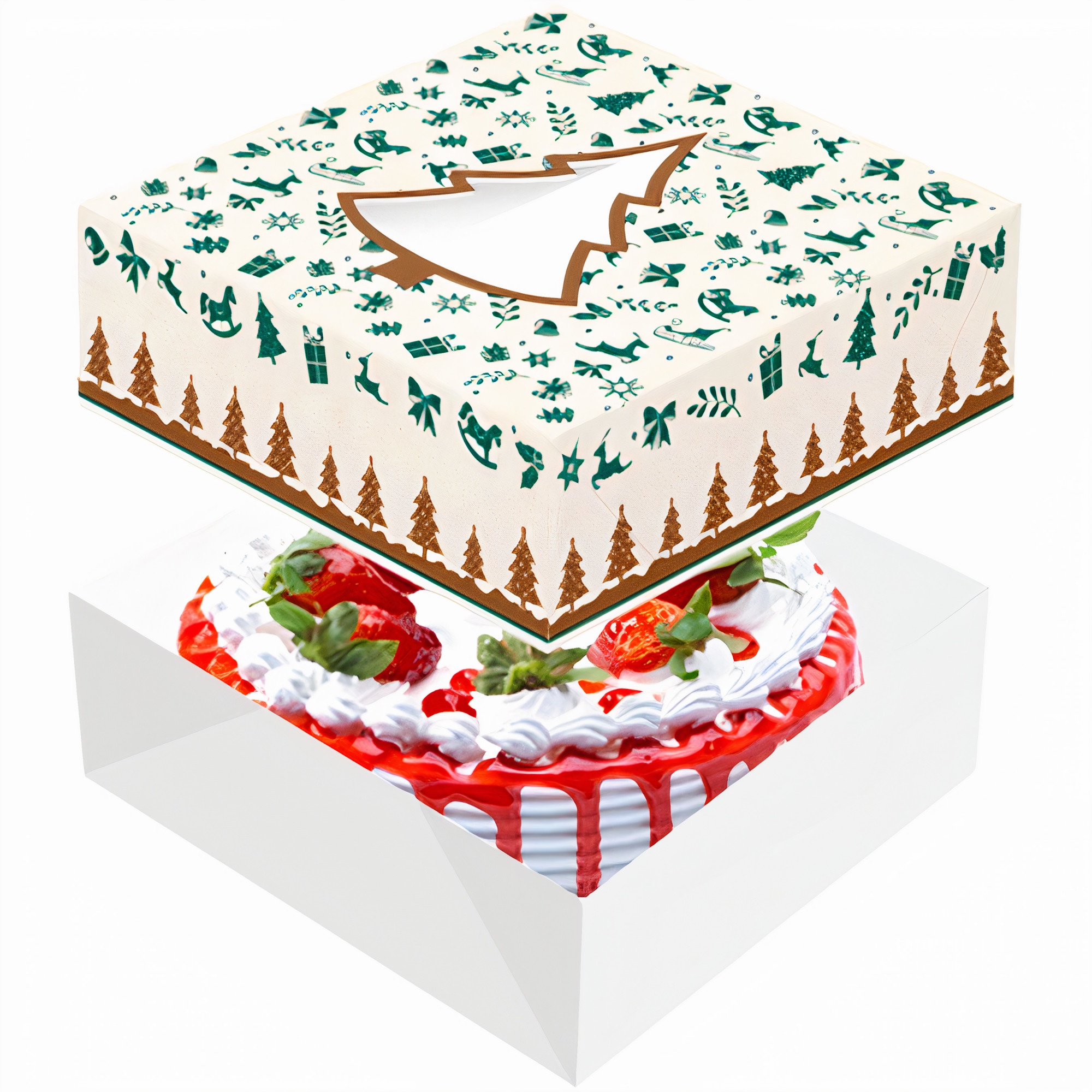 Schachtel für den Dreikönigskuchen 30 x 30 x 7,5 cm mit Weihnachtsbaum