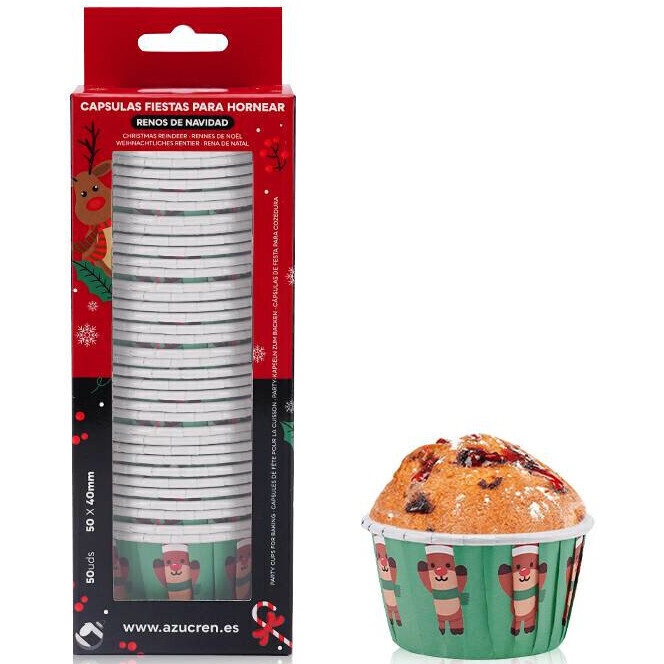Weihnachtsrentier-Cupcake-Kapseln 5 cm - 50 Stück