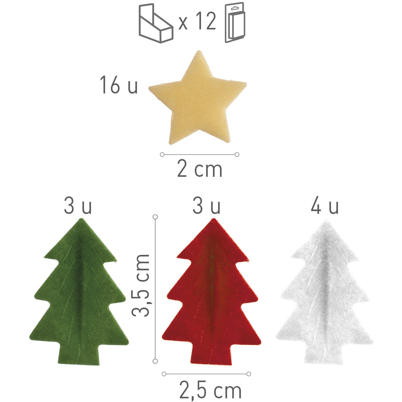 - Enthält: 16 Sterne, 3 grüne Tannen, 3 rote Tannen und 4 weiße Tannen.