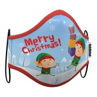 Eine weihnachtlich anmutende Maske, die Kinder dank ihrer ergonomischen Form bequem tragen können.