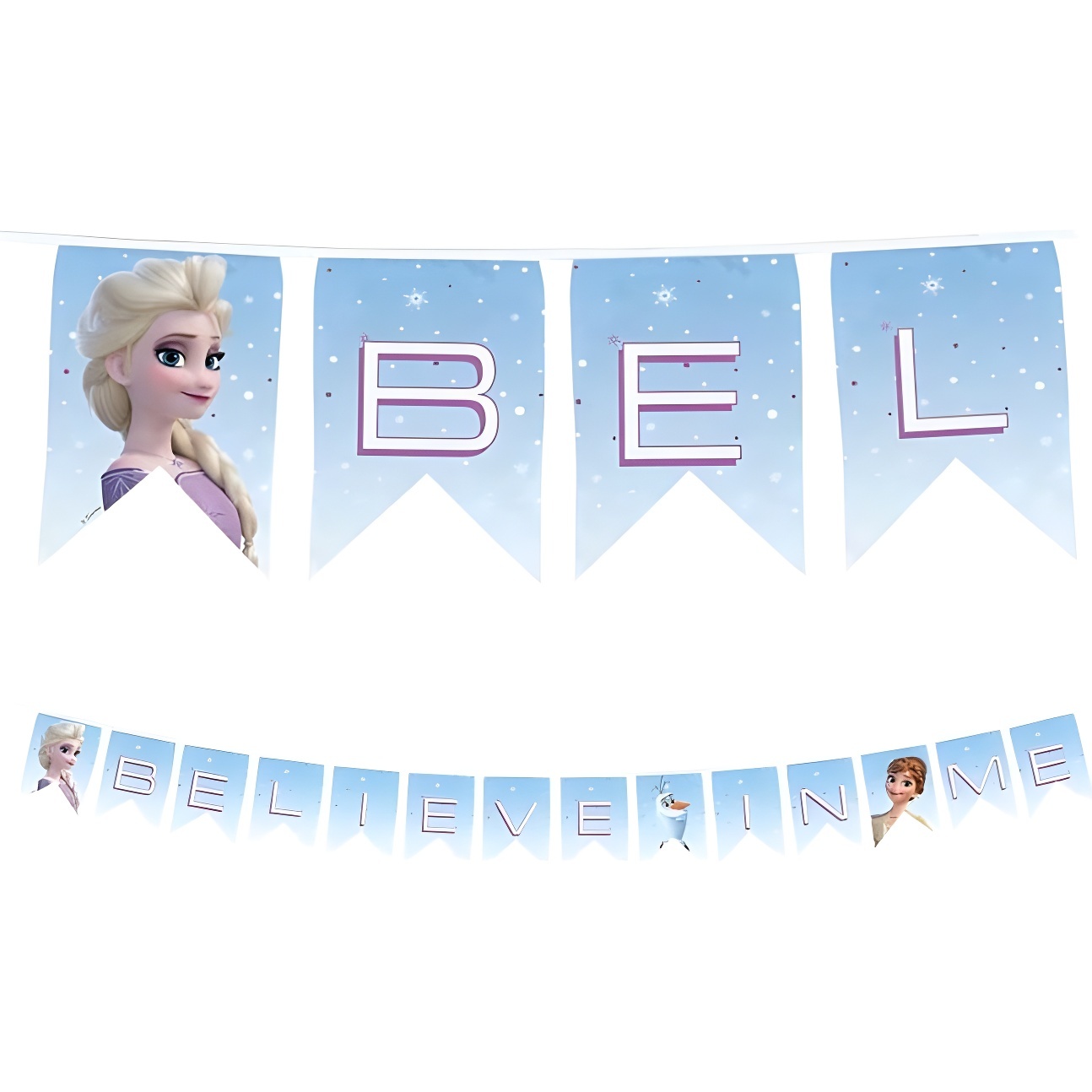 Mit dieser wiederverwendbaren Wimpelkette im Frozen-Design schaffen Sie im Handumdrehen eine zauberhafte Atmosphäre für Kindergeburtstage mit den Figuren Elsa, Anna und Olaf. Die klar lesbaren Buchstaben bilden den Schriftzug "Happy Bday", während pastellfarbene Wimpel und winterliche Details für eine märchenhafte Stimmung sorgen. Das leichte Format erleichtert die Kombination mit weiterer Dekoration und verleiht Ihren Fotos sowie thematisch gestalteten Tischen einen attraktiven Akzent.