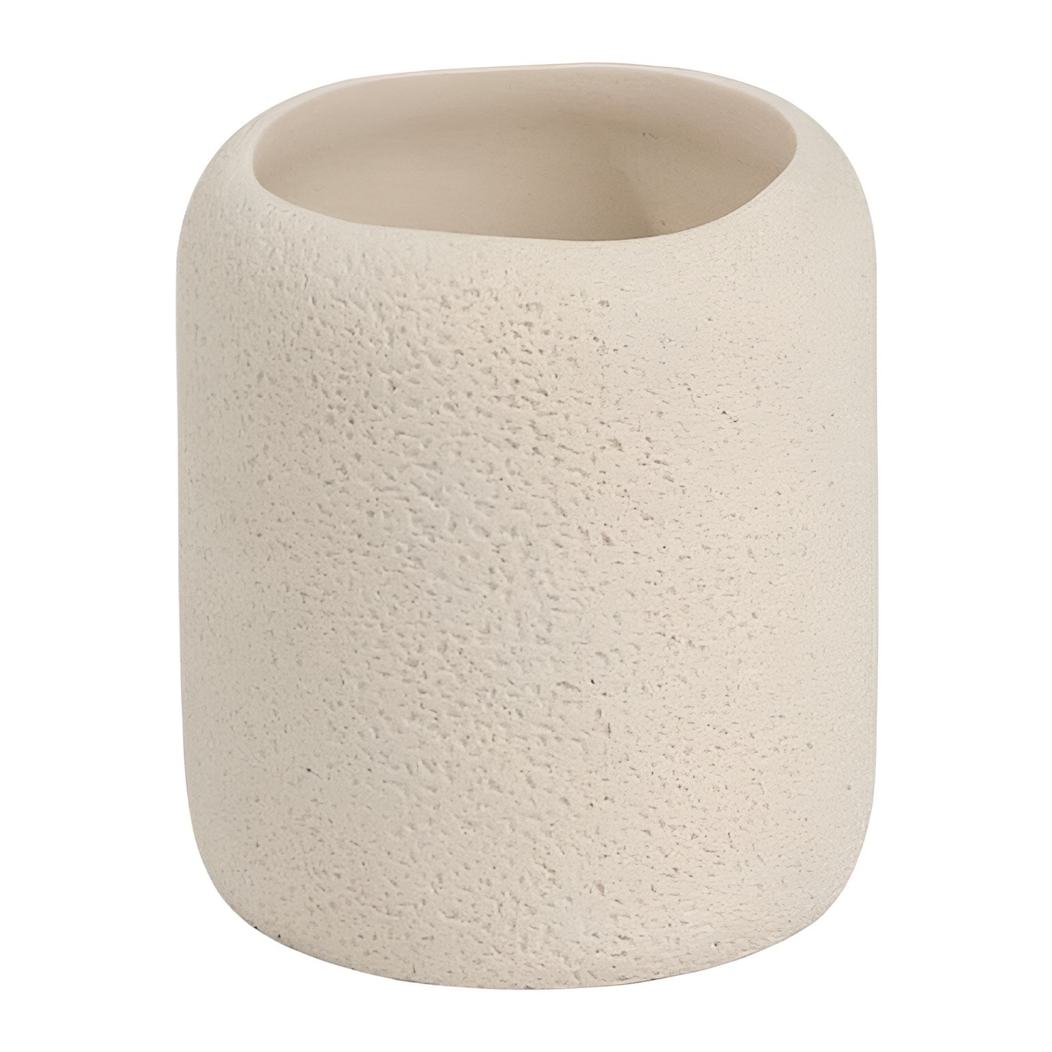 Organisch gestalteter Zahnbürstenbecher mit rauer Textur, die Ihrem Bad Wärme und Charakter verleiht.